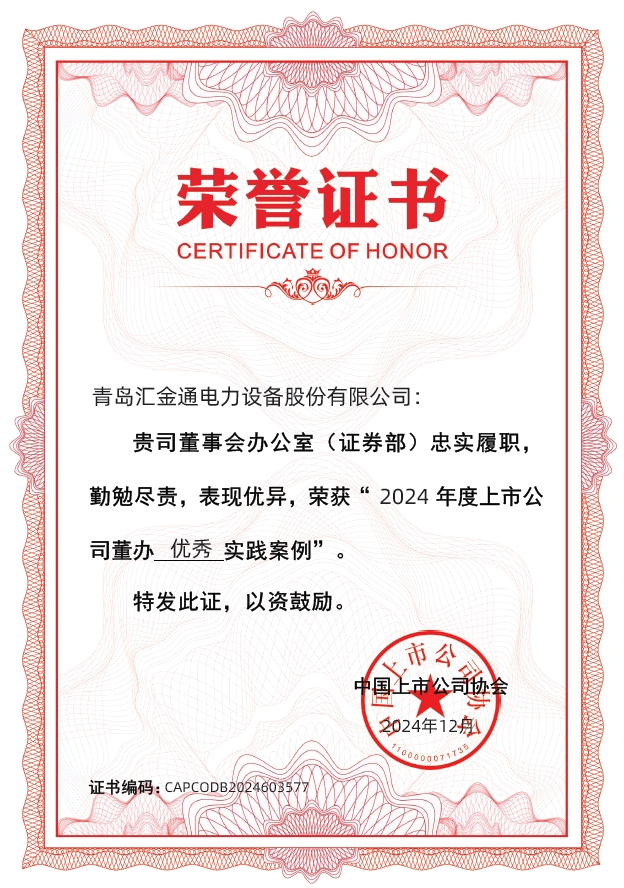 2024年12月19日,中国上市公司协会“2024上市公司董办最佳实践”案例征集活动结果发布,tyc5997太阳集团荣获“2024年度上市公司董办优秀实践案例”,连续两年蝉联该殊荣。